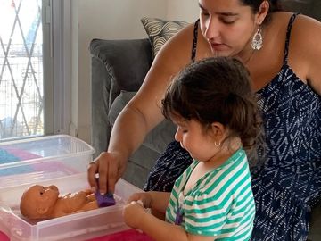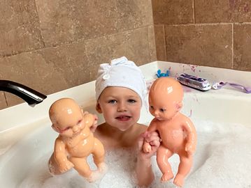 Do you want your kids to follow your nighttime routine? Let them wash their babies in the bathtub!
